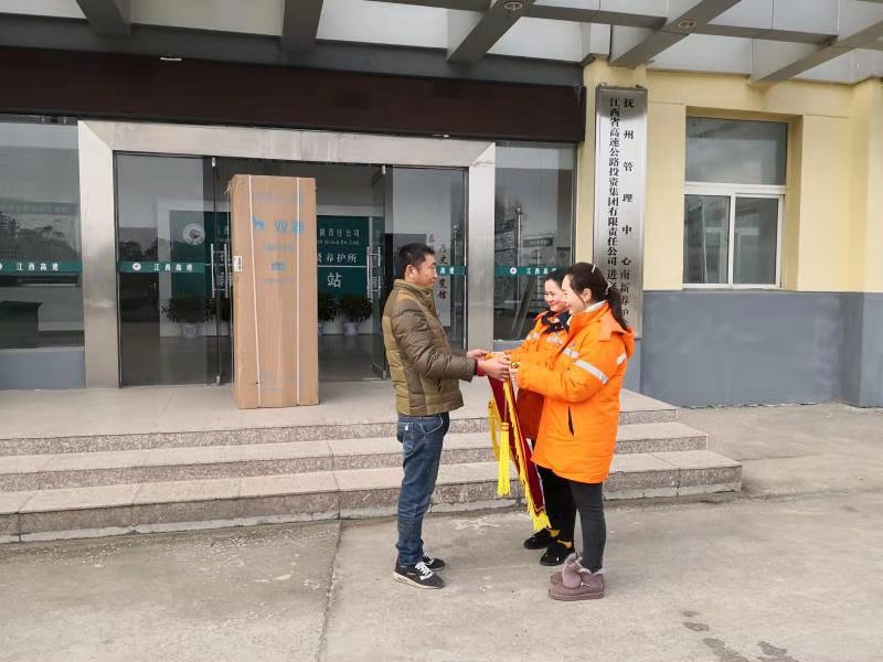 二零二零年的第一个星期日,抚州管理中心进贤养护所南新养护站迎来了来自安徽的一位车主送来的一面写有“拾金不昧、品德高尚”的锦旗,车主感谢南新养护站养护人员拾金不昧,使自己车上丢失的货物——一台新冰箱失而复得,更让他深刻地认识到了高速公路养护人的无私人格,感受到了养护人员身上彰显的社会正能量。