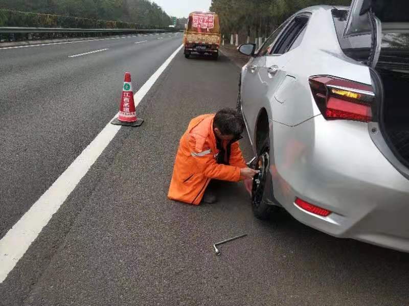 1月20日,广昌养护站养护人员路巡至济广高速公路下行线K1272+600处,发现一辆小轿车左后轮胎爆胎,该站养护人员帮助司机换好胎,不仅解决了其困难,还确保了高速公路的安全畅通。