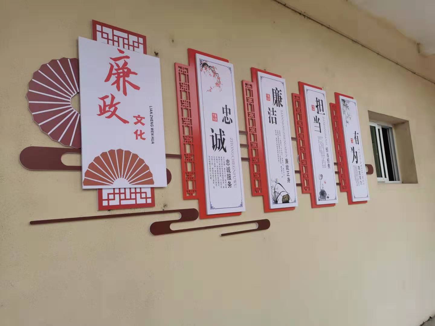 该廉政文化墙分为“忠诚”、“廉洁”、“担当”、“有为”四个部分,内容包括忠诚服务、廉能正身、担当担责,奋发有为等,图文并茂,内涵丰富。文化墙既给人以赏心悦目的感觉,又给人以温馨的警示,让人在轻松的氛围中接受廉政文化教育,得到心灵的净化。