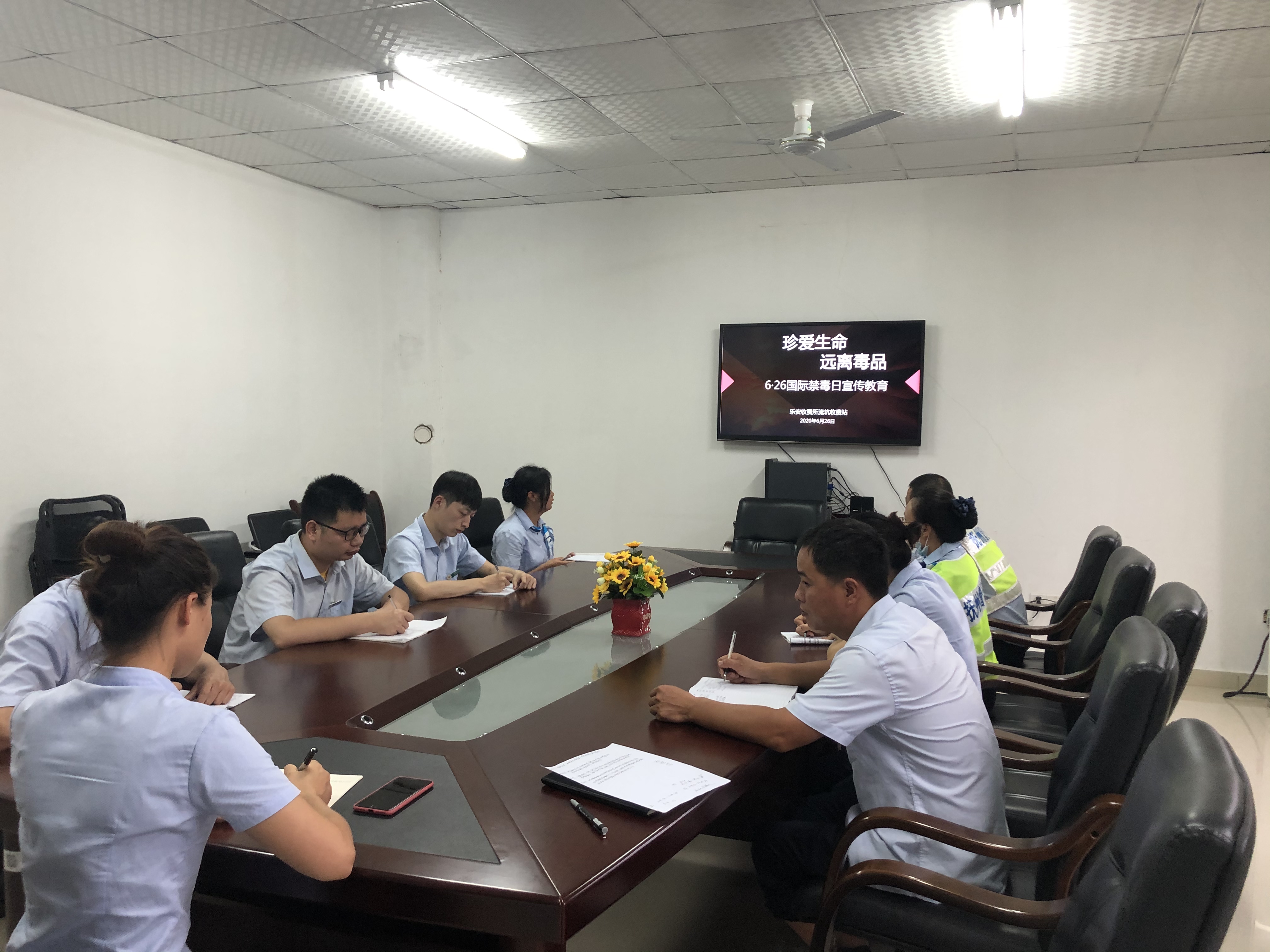 “不获全胜绝不收兵”为深入贯彻落实习近平总书记关于禁毒工作系列重要指示批示精神,进一步提升收费站员工及过往司乘“识毒、防毒、拒毒、禁毒”的意识和能力。在第33个国家禁毒日中,流坑收费站组织员工开展禁毒宣传教育活动。