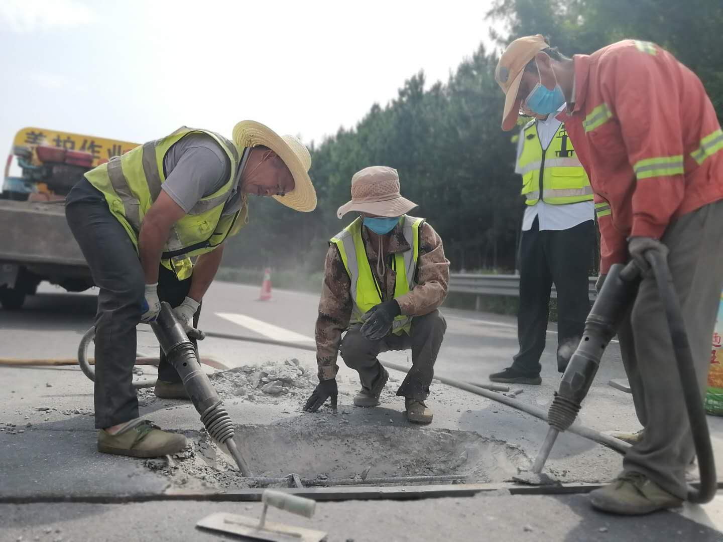 由于前段时间的汛期影响,该所所辖路段出现了坑槽和标志标牌倒伏现象,养护人员必须趁着天气晴好进行修复,不管再怎么炎热,他们都要将其以最好的效果展示给过往的司乘人员。
