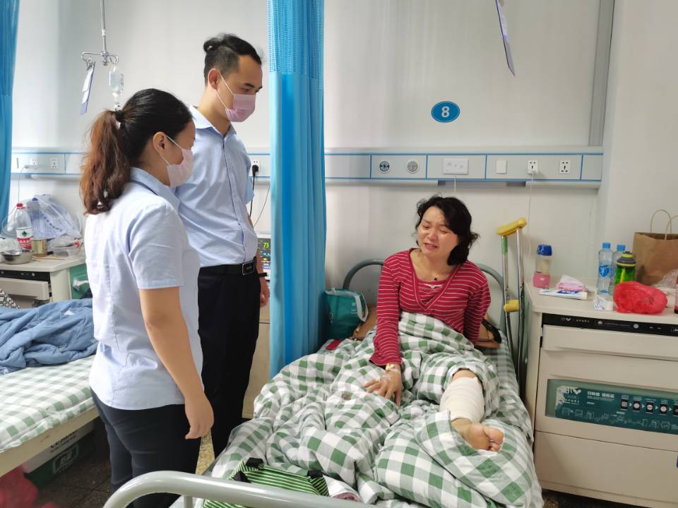 探望过程中,所领导一行人详细询问了事故发生的经过以及治疗情况,叮嘱她要注意休息,鼓励其保持乐观心态,积极配合后续治疗工作,争取早日康复。冯国珍表示,非常感谢所领导和同事们的关心和帮助,表示她会安心治疗,早日以健康的状态回到工作岗位。