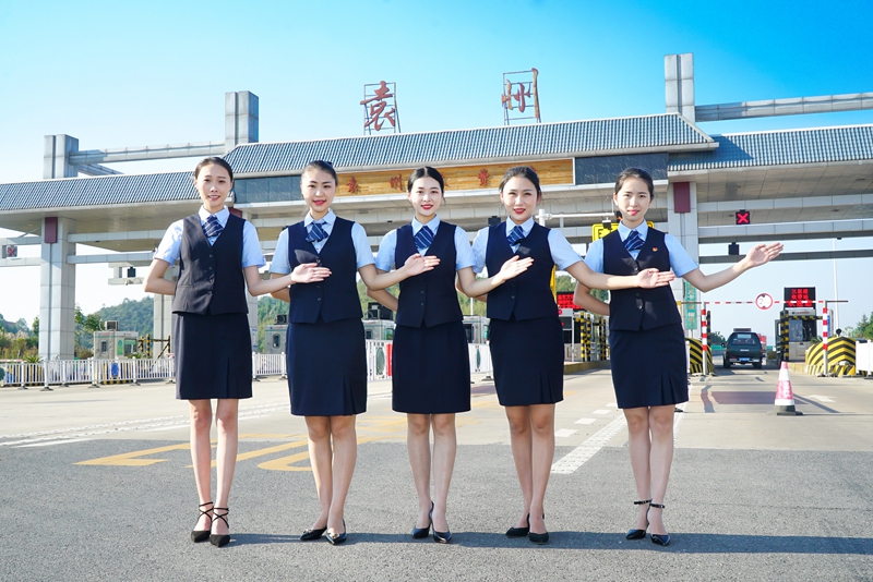 身穿着工装,肩披绶带,化着精致的淡妆,周莎在收费时,从容淡定的神情透露着一股“女神范”,她温暖的笑容、得体的礼仪、真诚的服务,收到了各方赞誉。
