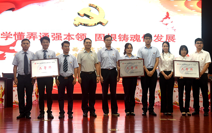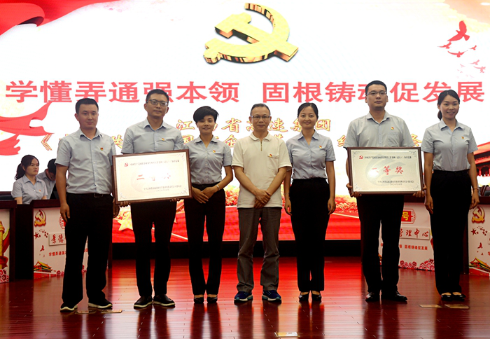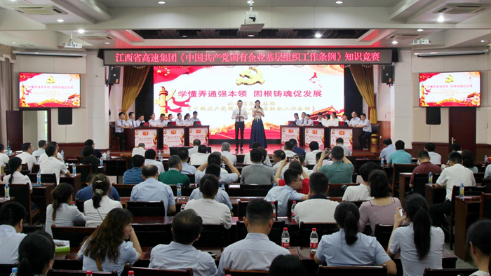 6月10日,一场以“学懂弄通强本领、固根铸魂促发展”为主题,以《中国共产党国有企业基层组织工作条例(试行)》为核心内容的知识竞赛在集团一楼火热进行。集团党委书记、董事长王江军,副总经理邝宏柱,党委委员、副总经理段卫党观看比赛并为获奖代表队颁奖,财务总监喻旻昕,监事会主席黄铮,总经理助理李占荣观看比赛。集团特邀省交通运输厅、省国资委有关部门负责同志出席观看,特邀省委党校讲师出席仲裁。