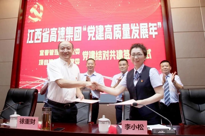 根据集团党委“党建高质量发展年”活动部署,为促进党组织之间相互学习、互相交流、互相提升,推动党建工作与生产经营同频共振、相融互促。6月3日,宜春管理中心党委与项目管理公司党委举行党建结对共建签约仪式。