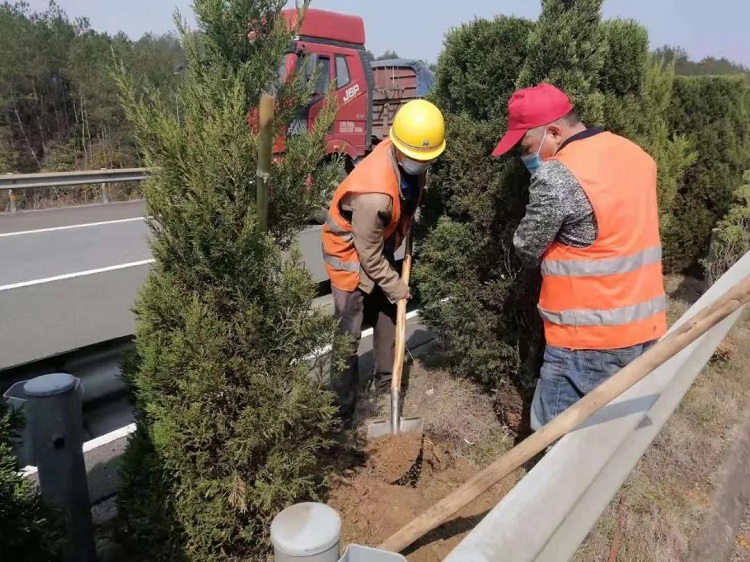 绿化补植“早”。组织加大路面保洁和绿化提升力度,重点做到修整路肩边坡、清理塌方,疏通排水设施。抢抓春季温度适宜、水份充足、苗木成活率高的时机,全面开展中分带防眩乔木补植工作,累计补植乔木1000余株,中分带拔草170余公里,保持良好的路容路貌。