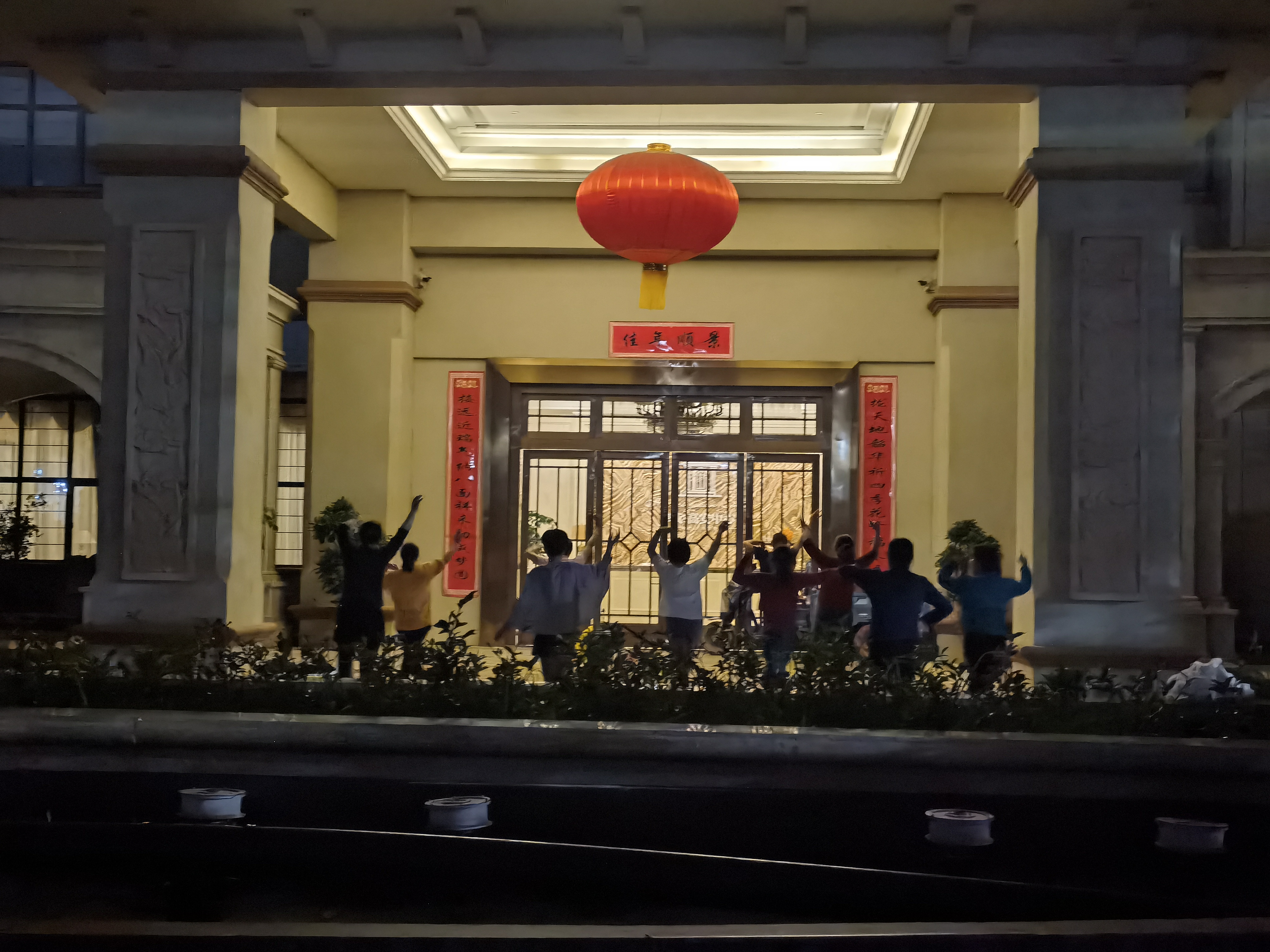 此外,出于对业主们精神文化活动的需求考虑,高安物业服务中心经与海威地产公司沟通协调,将海威高安售楼部大门前方空地为广场舞健身活动场地,并为场地专门设置了照明灯、遮雨棚、休闲椅等,确保业主们在雨、雪天也能进行户外健身活动。