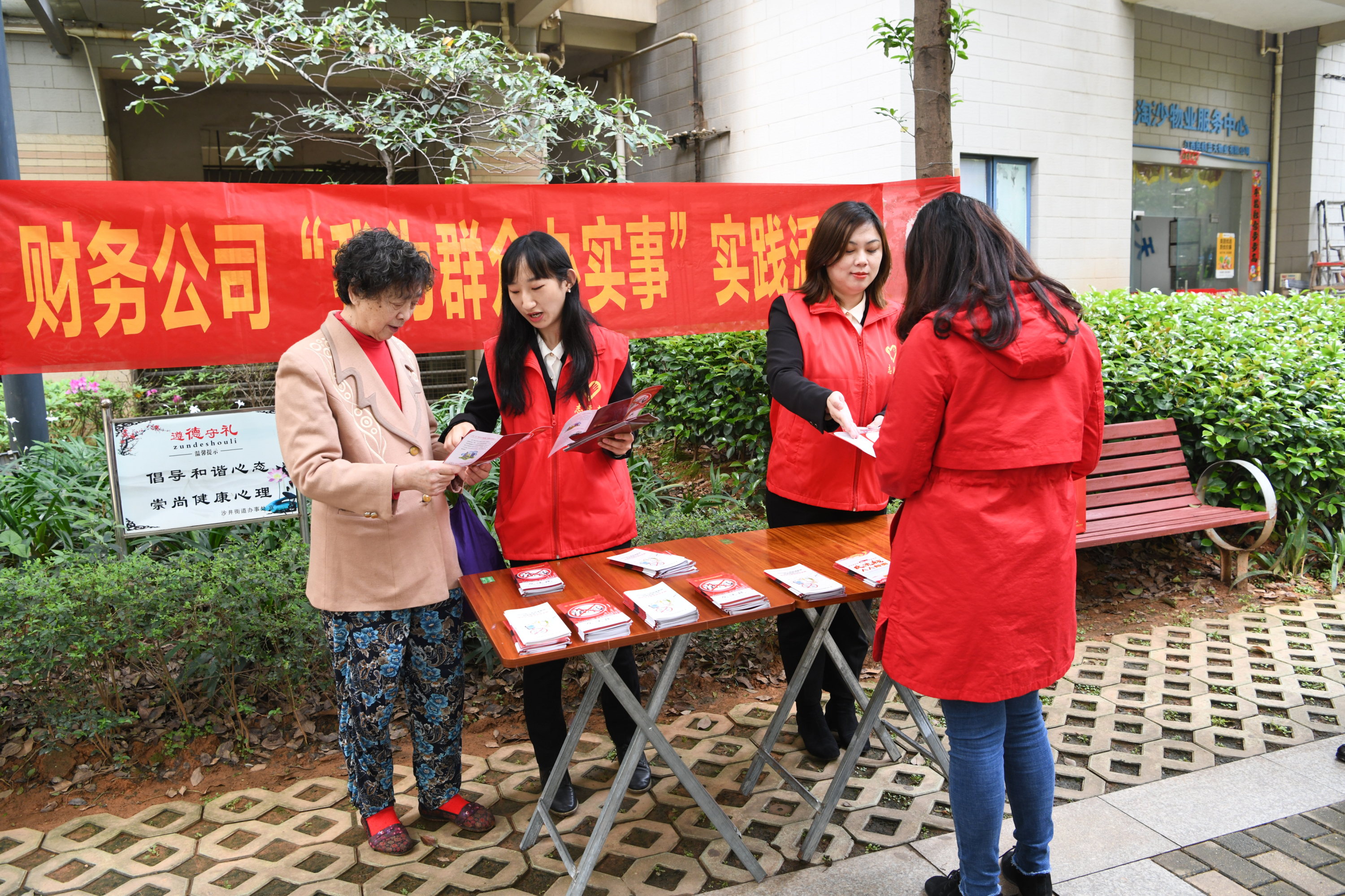 4月15日,财务公司组织青年志愿者前往飞虹社区开展了“我为群众办实事”实践活动,结合财务公司金融工作属性,向社区居民宣讲反洗钱和防范非法集资的相关金融知识。