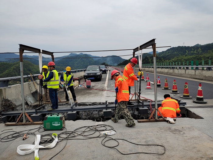 据了解,该中心以往高速公路大桥伸缩缝维修更换施工,往往采用人工配合吊车的方式。此方法不仅占用车道,给施工造成不便,且机械利用率不高,成本浪费较大。