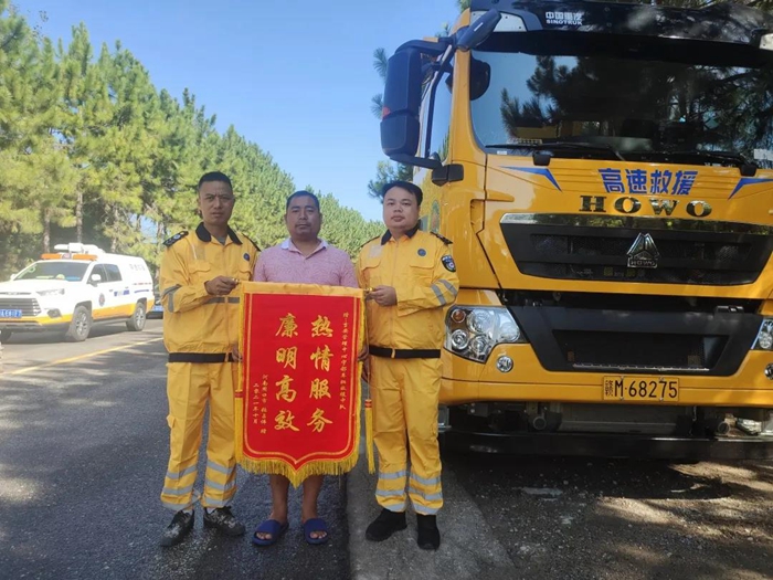 10月5日,黄陂车辆救援队宁都中队收到一份“特别礼物”——一面印着“廉明高效 热情服务”的锦旗,这是一位来自河南的大货车司机专程送来的。