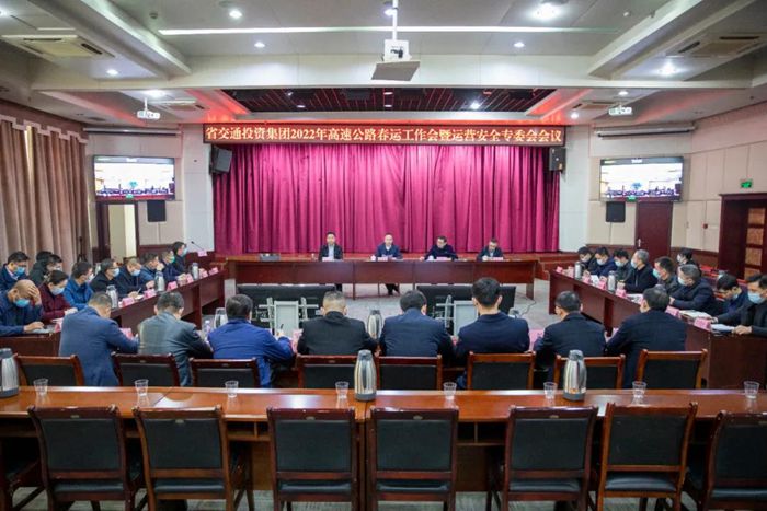 1月11日,省交通投资集团召开2022年高速公路春运工作会暨运营安全专委会工作会议,贯彻落实国家部委、省政府和省厅春运和安全工作部署,分析研判春运路网运营工作形势,研究部署路网服务保障和安全生产工作。集团党委副书记、副董事长、总经理谢兼法出席会议并讲话。他强调,春运工作关系千家万户,关乎社会和谐稳定,是重要的民生大事。要准确把握形势要求,突出目标导向,强化责任落实,全力营造安全稳定的高速公路通行环境。集团党委委员、副总经理段卫党主持会议,集团党委委员、副总经理李柏殿,集团总经理助理李占荣出席会议。