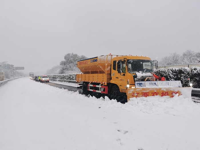 经九江管理中心全体人员不间断的抗冰除雪作业,中心所辖高速公路恢复正常通行。