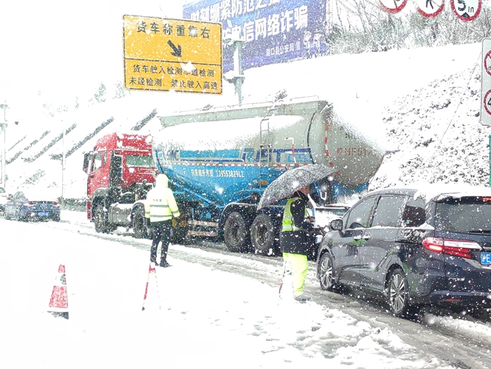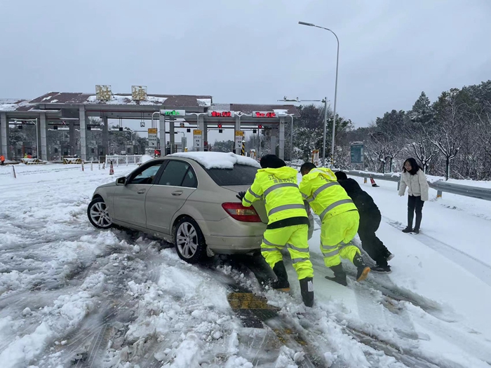 受雨雪天气影响,应交警要求,九江管理中心所辖高速收费站陆续封闭。各收费站立即启动应急预案,开展除雪、防滑、疏通工作,将收费车道、收费广场区域、办公区积雪进行清扫,确保通行车道及收费广场前后一百米区域路面畅通无积雪。并积极组织青年志愿者为滞留在收费广场的大批返乡司乘送去了热水、方便面等应急食物,为滞留的司乘送去了温暖。
