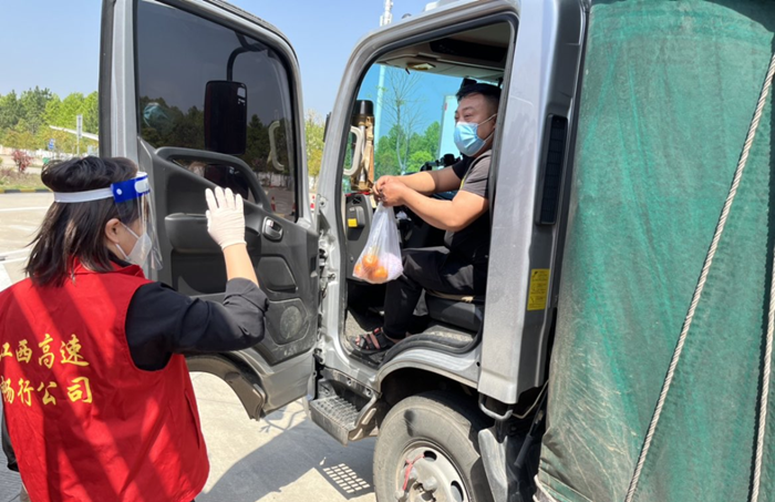 4月10日,因疫情防控需要,200多名司乘人员滞留庐山服务区。服务区志愿者了解情况后迅速行动,为滞留司乘免费提供饮食,解决司乘难题。