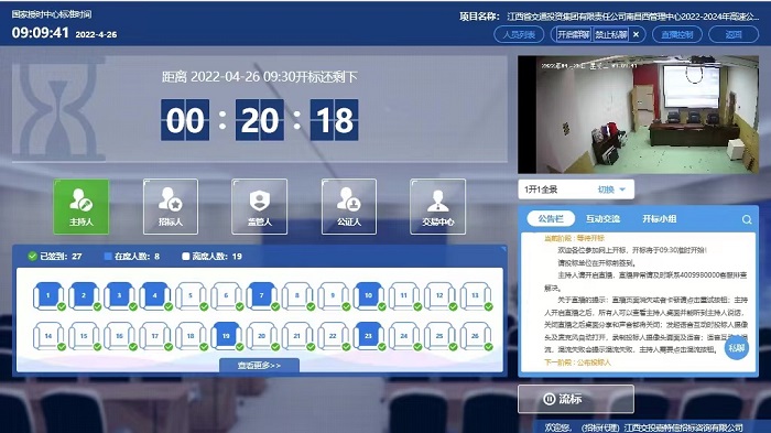 4月26日,为统筹推进疫情防控和道路管养工作,南昌西管理中心创新使用 “不见面” 开标数字化系统,完成高速养护项目《2022-2024年高速公路日常保养工程》开评标程序,各企业通过视频系统全过程参与线上开标,有效解决疫情期间人员聚集、企业投标成本高等问题。