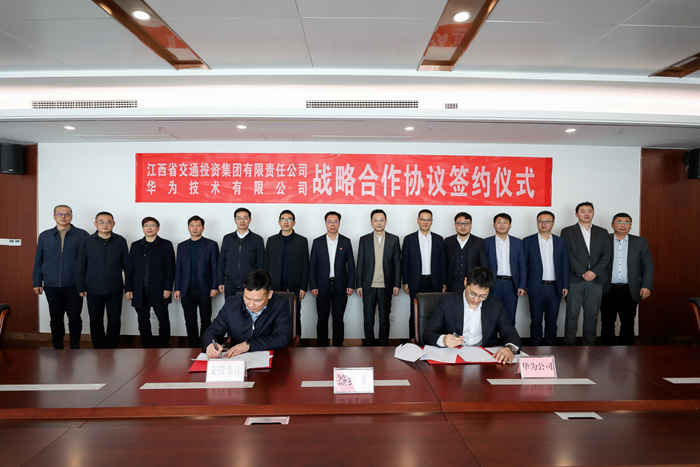 12月27日,江西省交通投资集团与华为技术有限公司战略合作协议签约仪式在南昌举行。江西省交通投资集团党委副书记、副董事长、总经理丁光明,华为技术有限公司副总裁、公路水运口岸智慧化军团CEO马悦出席仪式并讲话。江西省交通投资集团副总经理潘皓、华为江西业务总经理刘岩代表双方签约。双方有关部门、单位相关负责同志参加。