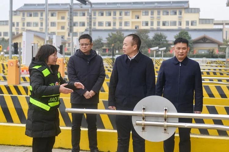 在九龙湖收费站,谢兼法详细询问了所站春运春节期间安全保畅、应急物资储备、现场管控及人员管理情况,实地察看了车流通行状况。他强调,春运春节期间车流人流倍增,要紧扣保安全、保畅通、优服务主线工作,及时分析研判车流量,加强运行监测,科学制定分层次的应急预案,严格落实24小时应急值班值守制度,强化防范化解安全生产风险和消防应急救援能力,有效应对车流高峰,高效处置各类突发情况,确保高速公路安全畅通。要做好服务保障工作,切实把“高速映山红”服务品牌理念融入到窗口服务中,充分发挥好综合服务站作用,进一步提升文明服务水平,用心用力用情解决好群众“急难愁盼”问题,妥善安排好春节期间留岗职工的生活,确保大家度过一个欢乐祥和的新春佳节。