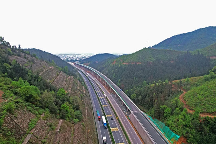 围绕唱响“美绿高速”建设品牌,昌金改扩建项目从绿化施工着手,打造沿线人文景观,彰显路域文化特色。针对宜春东枢纽区域存在复杂地质、土质力学能力差,容易造成边坡垮塌、地质滑移等病害情况,该项目充分发挥党建引领效应,由党员带头开展技术创新研究,推出了高分子蜂巢约束系统护坡技术、“TS+P”喷播技术、高性能植生环保混凝土技术、绿色加筋格宾挡墙技术、绿色木纤维高陡边坡无土绿植技术、“三位一体”防护技术等多种边坡绿化与生态防护技术,成功实现固土护坡。如今,在宜春东枢纽绿化带上,一排排错落有致、造型各异、色彩丰富的绿植与公路形成一幅路景交融的美丽画卷。