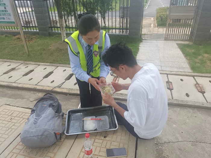 工作人员察觉到他的异样,迅速询问情况,得知是因为低血糖引起头晕后,立即到综合服务站找来几粒糖,并为他送上了一份满含暖意的午餐以及矿泉水。