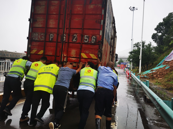 6月26日上午8时,一辆满载快递的货车行驶至九江收费站超宽车道时突发故障,无法正常行驶。面对这一状况,九江收费站工作人员迅速行动,第一时间前往现场处置。他们分工协作,一边疏导现场交通,确保其他车辆正常通行,一边组织人员对车辆进行检测,寻找解决方案。