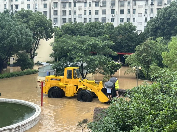 在这场防汛“攻坚战”中,所站工作人员团结奋斗,兄弟单位更是守望相助。由于湖口收费所院内积水较深,不仅办公楼及宿舍楼一楼被淹,还危及到发电机房。为保障人员安全,湖口收费所实施断电,不远处的湖口收费站岗亭受到影响。附近的九江东收费站了解情况后,送来便携式发电机及便携式收费机,帮助岗亭恢复供电,及时保障车辆通行。此外,都昌养护所也调派铲车赶赴现场,帮助转移被困职工。