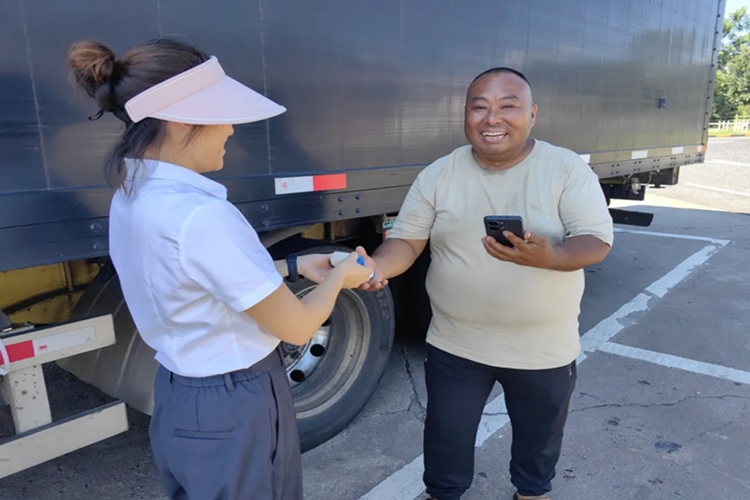 “真的是谢谢你们,还好你们这里有测温枪,要不然就麻烦了,如果去县城买,不但折腾,还耽误时间,虽然对于你们来说是举手之劳,可对于我来说却是雪中送炭!”工作人员将测温枪留给了李师傅,让其随时可以为轮胎测温,并提醒他注意行车安全、顺利抵达目的地。