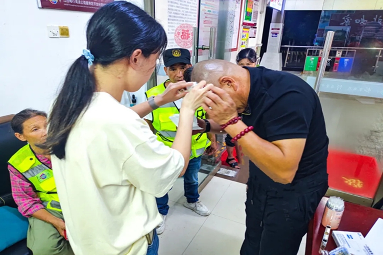7月12日晚,德兴服务区工作人员接到司乘求助,一位货车司机在服务区自行检查车辆过程中,头部不慎磕到车辆底盘,鲜血直流,工作人员立刻前往事发地点了解情况。