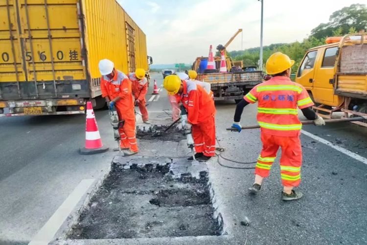 提前计划部署,按照“预防为主,防治结合”的养护方式,组织多支队伍循环作业,人机协同清理路面,开展“以面铺点、以点衬面”的集约化养护施工,对路面坑槽、护栏板、桥梁伸缩缝、绿化带等区域进行修复。