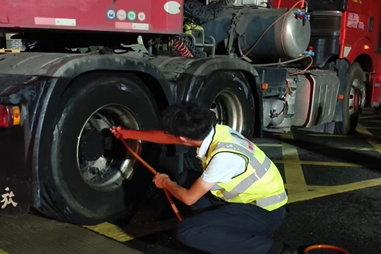 货车轮胎发热 他们及时处置