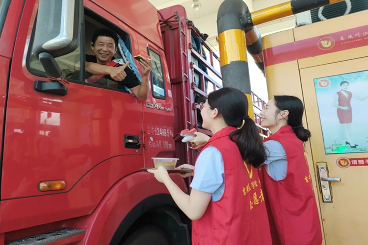 密切关注天气和车流变化,科学研判暑期高速公路的车流高峰时段,增派服务保障人员,确保收费道口安全畅通;常态化设立“党员先锋岗”“青年志愿者服务岗”,为过往司乘提供出行装备补给及茶水休憩、轮胎降温等便民服务;向过往司乘免费发放自制的冰镇绿豆汤、冰凉粉、矿泉水、西瓜等降暑物品,普及高温下的行车安全知识,在炎炎夏日为过往司乘送上丝丝“清凉”。