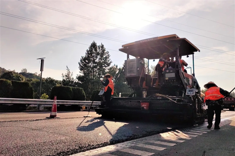 在杭瑞高速九景段上行K429+170公桩罩面施工现场,热浪升腾,“蒸烤”模式还在火热持续。该中心养护人员坚守一线,开足马力,高温下的ECA-10薄层罩面沥青砼散发着滚滚白气,养护人员挥动着手中的铁锹和铁耙,将滚烫的沥青砼整理得平平整整。面对高达近50℃的地表温度和近150℃的热沥青的炙烤,施工人员错峰作业、轮班上岗,确保工程按时保质推进。截至8月12日,专项养护完成铣刨沥青混凝土面层8.46万m3、摊铺沥青0.96万m3、2.5cm易密实薄层罩面8.48万㎡等。