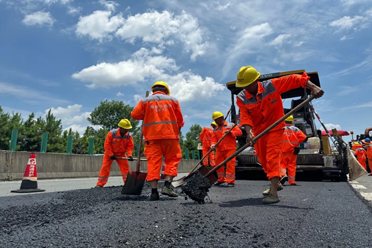 走近施工现场,只见养护工人们个个全副武装,安全帽、长袖长裤、厚底鞋,汗水犹如雨下,湿透的衣服粘滞着沥青味的炙热。