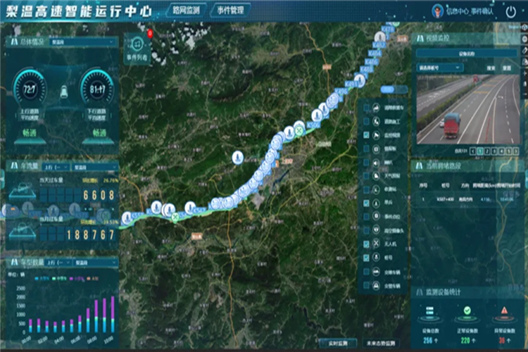 该中心积极引入先进的数字信息技术,构建了集监控、预警、调度于一体的梨温高速智能运行中心(IOC)。该平台深度融合了高清视频监控、大数据分析、AI智能识别、无人机探查等前沿技术,实现了对高速公路路况的实时监测与精准分析。通过融合终端的广泛应用,监测员能够迅速捕捉路况变化,为科学决策提供坚实的数据支撑。
