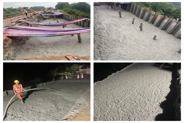 为提高汛期路基病害处治能力,保障高速公路在发生地质灾害后的通行效能,该中心引进新型材料——泡沫轻质土对下边坡滑塌进行处治施工。泡沫轻质土作为一种集轻量、高强、环保、高效于一体的轻质固态填料,在大广高速上高互通E匝道塌方修复中大显身手,仅用9天时间就完成了该处路堤高边坡的保通施工,比常规混凝土回填节约了8天工期。这一新型材料的应用,不仅大大提升应急抢修的效率与质量,更为高速公路养护施工提供了新的路径。