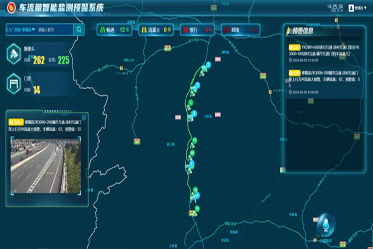 吉安东管理中心研发投入车流量智能监测预警系统,实现对路段断面,以及门架或互通区间车流情况的实时监测和预判预警,根据预警提前采取针对性疏堵保畅措施,进一步保障道路安全畅通。