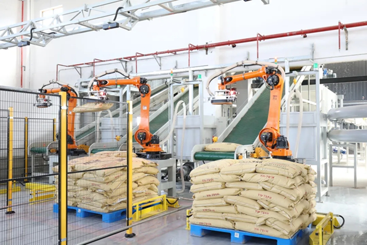 来到生产区,一台台机械臂上下“舞动”,一个个原料袋被有序切割、回收……“我们的生产区主要涵盖沥青加工车间和沥青仓储区,具有自动化沥青加工生产线三条,SBS改性剂智慧仓库一栋。”夏杰介绍道,“自建设以来,基地坚持以数智赋能,实现减人、提质、降本、增效的目标。”