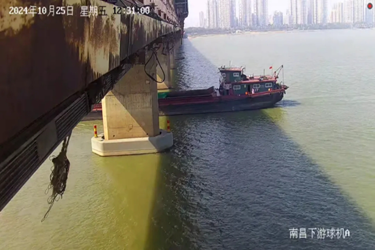 今年10月25日12点25分和12点30分,两艘船舶欲先后通过南昌大桥时发生偏航,桥梁防撞系统平台精准定位事发位置,发出船舶偏航预警信息。监控员迅速点击报警提示标志,同时打开相应桥梁视频监控画面,确定为有效报警后,第一时间联系两艘船舶工作人员,并通过南昌大桥现场大屏发布船舶偏航提示进行航线纠正,密切关注监控情况,直至船舶驶至正确轨道。
