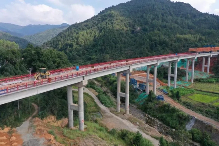 光坑口大桥是G356国道万安段改建项目重点控制性工程,上部结构为30m预应力砼T梁,下部结构为柱式墩、柱式台、桩基础,也是项目跨径最大、桥长最长的桥梁。自梁板开始架设以来,为克服弯道架设、桥下居民通行、高温天气等困难,G356国道万安段总监办全程跟踪管控、规范细节,始终把工程质量和安全生产放在首位,全力确保架设任务圆满完成。