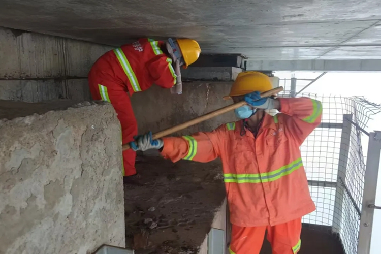 积极开展桥梁日常养护及病害修复工作,及时排查整治桥梁结构病害,全面做好伸缩缝清洗、泄水孔清理、桥面保洁、桥梁锥坡及水沟清理、桥台支座钢板除锈刷漆、人行道栏杆柱环氧砂浆修复等工作,确保桥梁各项基础设施始终处于健康的运行状态;积极与高速交警、交通运输综合执法大队等部门联合开展桥下空间整治,拆除违章搭盖建筑,清理私自堆砌的杂物,有效治理各类桥梁安全隐患问题。