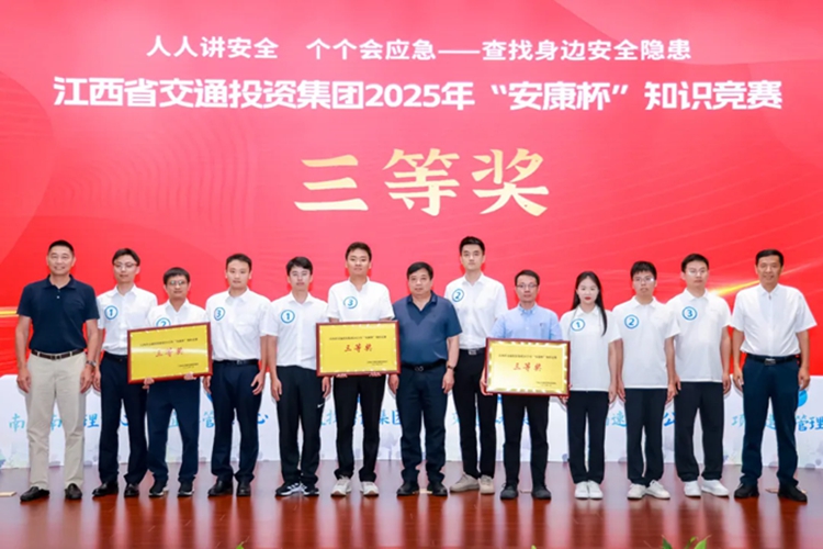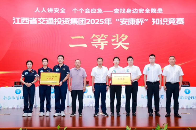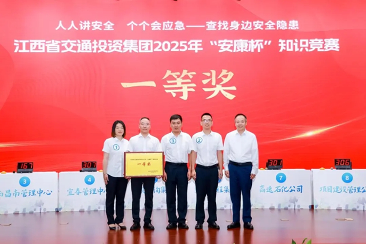 为深入学习宣传贯彻习近平总书记关于安全生产的重要论述和重要指示批示精神,持续推动企业安全生产主体责任和全员安全生产责任制的落实,6月24日,省交通投资集团举办2025年“安康杯”安全生产知识竞赛,集团党委书记、董事长谢兼法,党委委员、副总经理李柏殿出席并为获奖队伍颁奖。集团直属各单位、总部有关部门负责同志观看比赛。