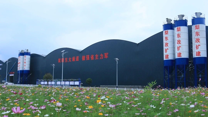 场站植绿精细管理:梨东改扩建SSZ标打造公路绿色低碳工业中心,完成约320亩绿化种植工作,构建出“花园式”场站。重点打造绿色低碳数智化中心,借助智能监测系统,实现对能耗与碳排放的全程管控。采用自动喷淋系统,精准响应现场环境变化进行喷淋。应用混凝土尾料循环再利用施工处理系统,对搅拌车尾料中的砂、石、水进行分类分离回收利用,不仅有效节约了砂石料,更从源头杜绝了混凝土乱倒乱弃造成的污染问题。