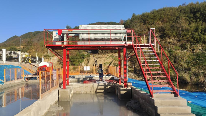 废水循环分层净化:在通铜T3标1#拌合站,项目团队巧妙利用地形条件,在场区内外设置截排水沟,将生产废水导入五级沉淀池,经层层净化后,末端清水回用于罐车冲洗。通过砂石分离机与压滤机协同作业,前者高效分离混凝土中的砂石与浆体,后者运用压滤机对含有残渣的污水进行固液分离处理,最终实现污泥资源化和污水净化回用的循环目标。