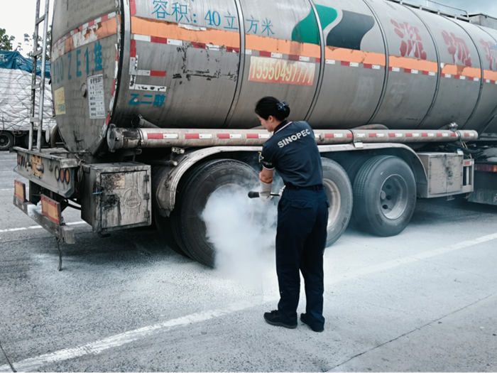 紧急处置化解车辆燃烟危机 8月16日,在修水服务区加油站附近,一辆危化品车的后轮突然冒烟,情况十分危急。工作人员在嗅到刺鼻气味后,快步排查到危化品车位,只见浓烟翻涌、情况危急,便迅速拎起灭火器奔冲向现场,一边侧身挡在车主前,一边拔掉灭火器保险销,对着冒烟的轮胎根部压下了压把。大约半分钟后,浓烟渐渐消散。车主跑过来向工作人员道谢:“多亏你们,不然真不敢想后果!”