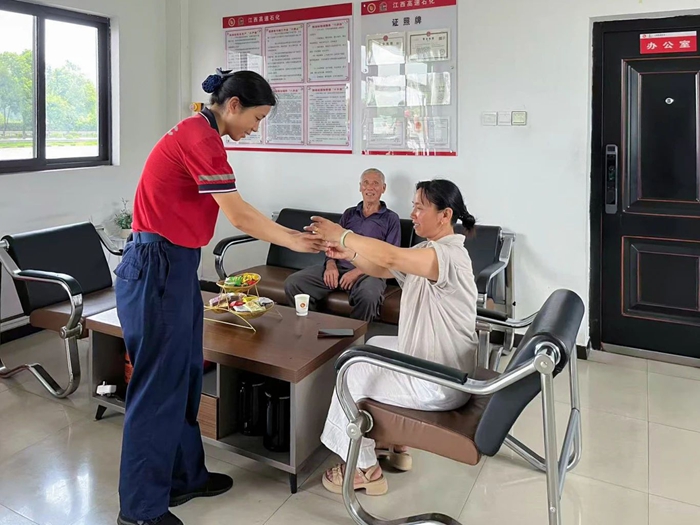 体贴周到关注司乘所需 8月17日,午后的南丰服务区加油站,太阳把罩棚晒得滚烫,工作人员正熟练地为一辆车子加油,看见后座两位乘客扶着车门缓缓下车,脚步踉跄,脸色苍白。“你们是不是不舒服?”工作人员迅速挂好油枪,快步上前搀扶。二人说:“坐久了,天气又热,头有点晕。”“到站里喝口茶缓缓,那儿凉快。”工作人员带领二人走进营业大厅,为他们拿来了藿香正气水和解暑凉茶。过了一会儿,二人脸色逐渐恢复红润,精神也好了许多,这才在家人的搀扶下,重新踏上旅途。