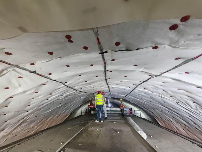 精准监测提升工程质量:通铜T3标创新应用隧道二衬拱顶脱空监测技术,在防水板铺设前,于土工布与防水板夹层间,沿隧道拱顶精准布设三条各12米长的传感带。浇筑过程中,该系统可实时捕捉二衬拱顶混凝土填充状态,将脱空数据同步传输至PC端管理平台。工作人员依据实时数据,能够迅速定位脱空区域,及时开展振捣补注作业,以智能化监测与精准化处置,保障拱顶混凝土浇筑密实,显著提升二衬施工质量。