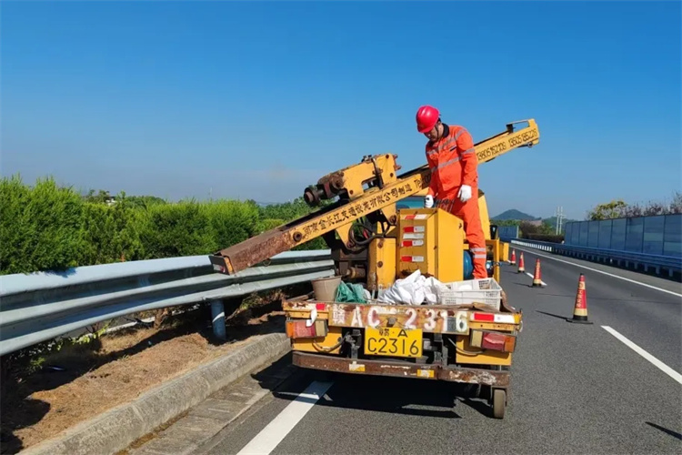 定期对护栏、标志标线、隔离栅、防眩板等设施进行全面检查,对损坏、缺失的设施及时进行更换维修,对沿线护栏板及立柱进行除锈喷漆作业,确保交安设施完好。
